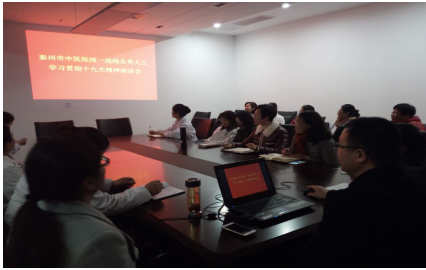 11月20日下午,泰州市中醫(yī)院在四樓一號(hào)會(huì)議室組織民主黨派學(xué)習(xí)中共十九大精神,院黨委委員、副院長殷勇同志主持會(huì)議并講話。