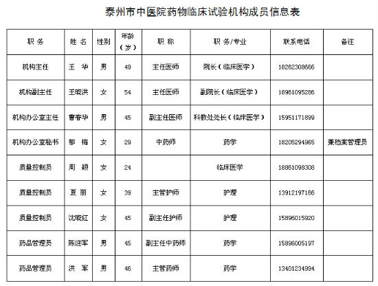 藥物臨床試驗(yàn)機(jī)構(gòu)成員信息表