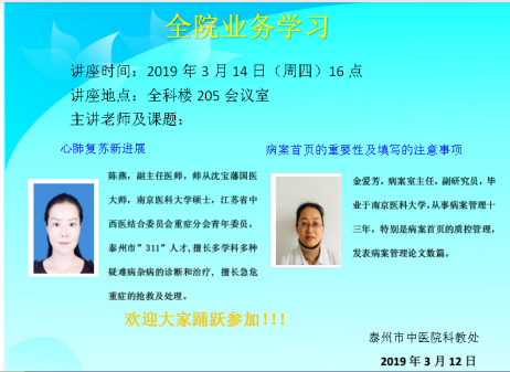 全院業(yè)務(wù)學(xué)習(xí)通知-2019年3月14日