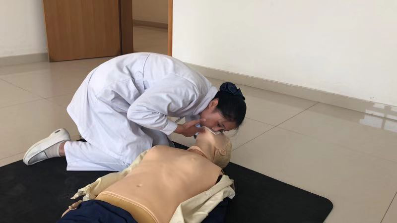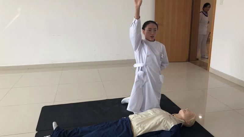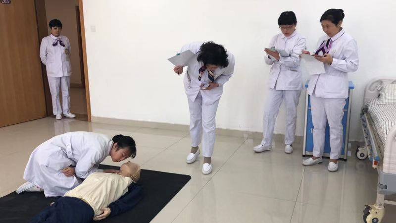 各院校實(shí)習(xí)同學(xué)競相參與,最后推選14名同學(xué)參賽,其他同學(xué)全程現(xiàn)場觀摩。競賽分為耳穴埋籽組和心肺復(fù)蘇組,孫四美、劉萍、徐敏護(hù)士長擔(dān)任心肺復(fù)蘇組評委,周麗娟、劉巧鳳、蔣富華護(hù)士長擔(dān)任耳穴埋籽組評委,護(hù)理部羅芹主任、沈曉紅主任親臨比賽現(xiàn)場予以指導(dǎo)。