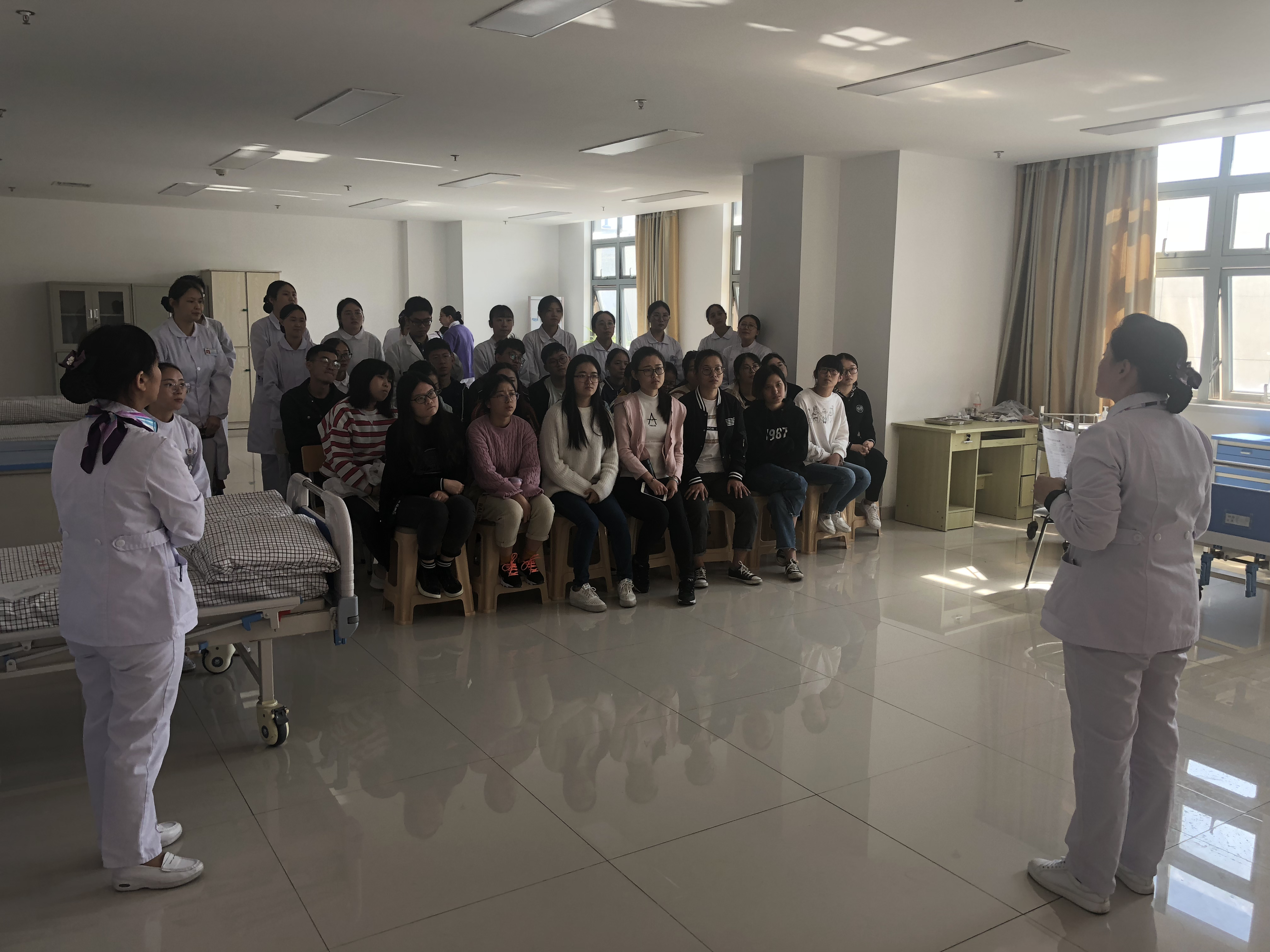 競賽在護(hù)理部分管領(lǐng)導(dǎo)許粉年主任的講話中拉開帷幕,同學(xué)們以飽滿的熱情投入到緊張的比賽中。