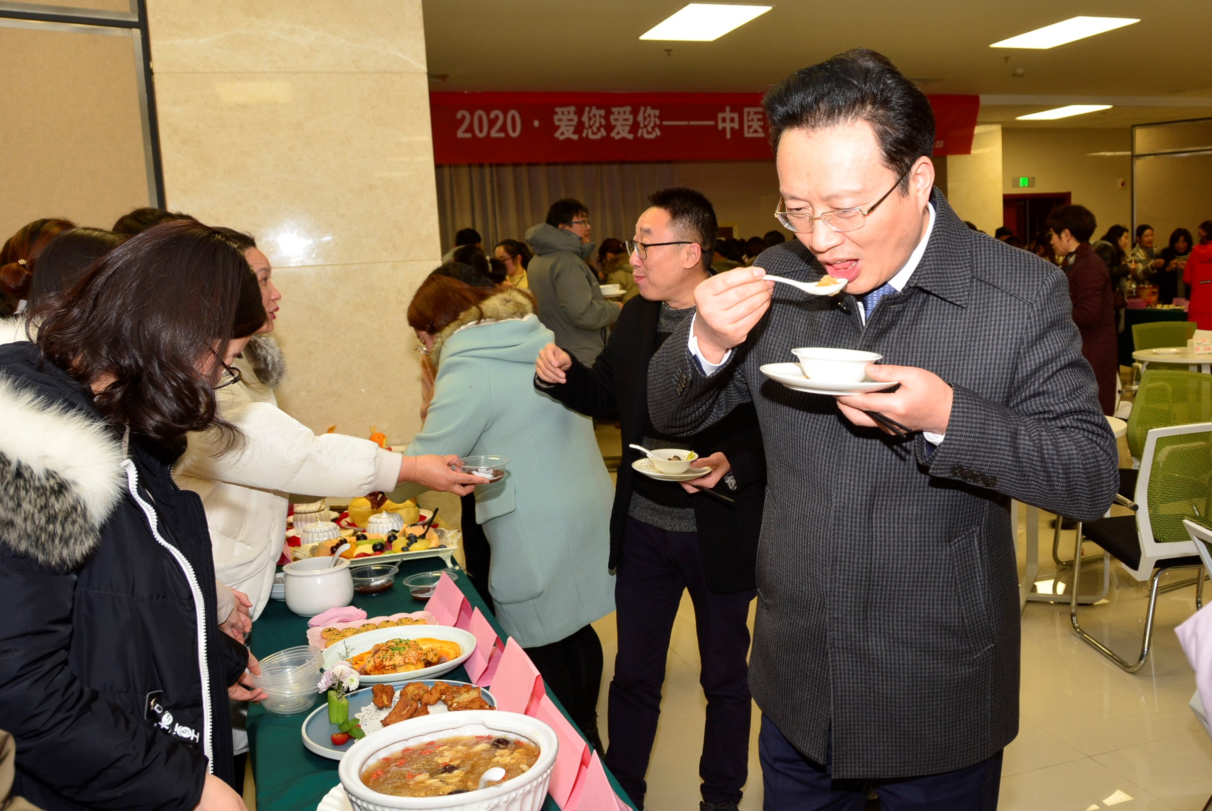 泰州市中醫(yī)院黨委書記、院長王華參與此次活動并品嘗藥膳。王院長對護(hù)理人員昂揚(yáng)奮發(fā)的精神風(fēng)貌、精湛嫻熟的烹飪技能給予高度贊揚(yáng),他希望大家通過此次廚藝大賽增進(jìn)交流,倡導(dǎo)健康生活及科學(xué)合理的膳食習(xí)慣,進(jìn)一步豐富職工的文化生活,同時也更好地為患者提供優(yōu)質(zhì)的中醫(yī)護(hù)理。最后王院長向全體護(hù)士致以2020年新年的問候。