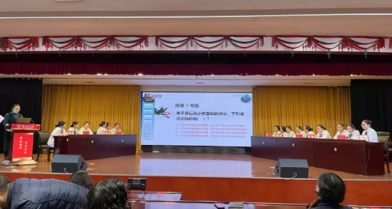 搶答題環(huán)節(jié)既拼“手速”,也拼臨場反應(yīng)與知識儲備。選手們?nèi)褙炞?,爭奪答題權(quán),經(jīng)過數(shù)個回合的比拼,各隊之間的比分逐漸拉開差距,將現(xiàn)場氣氛推向高潮。各隊踴躍搶答、你爭我趕、毫不示弱,現(xiàn)場氣氛活潑熱烈、扣人心弦,充分展示了泰州市中醫(yī)院護理人員扎實的理論基礎(chǔ)和奮勇爭先、積極向上的精神風(fēng)貌。
