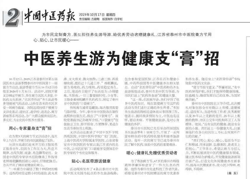 來源:泰州市中醫(yī)院 作者:編輯 時(shí)間:2019-10-17 15:16:00