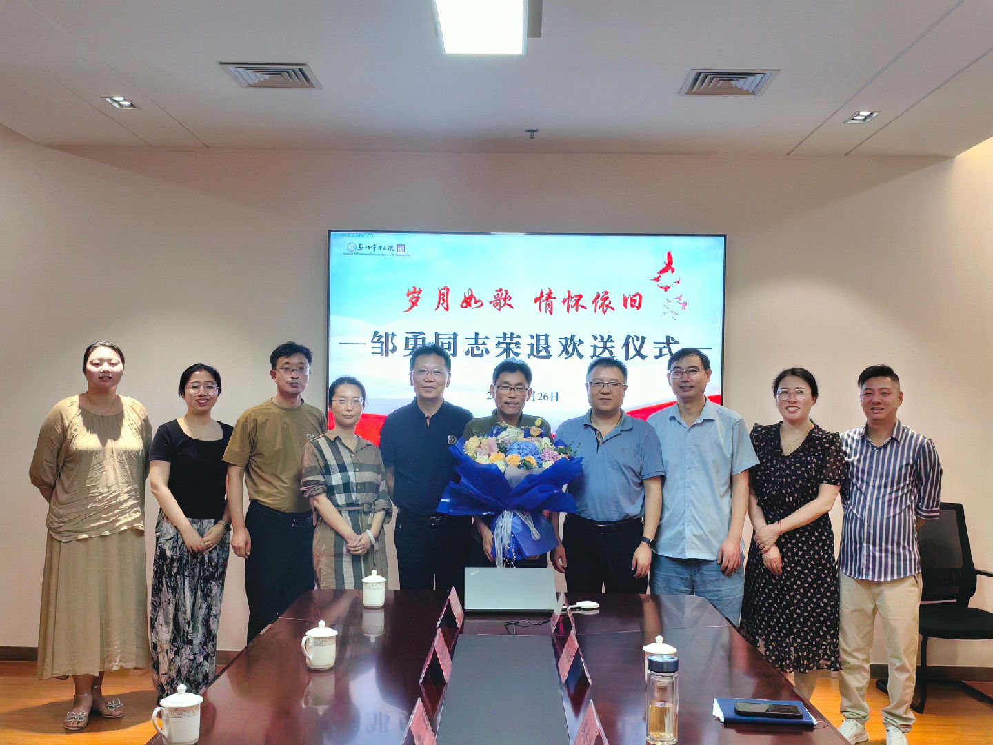 鄒勇同志回憶了從業(yè)以來(lái)的點(diǎn)點(diǎn)滴滴,分享了自己的工作經(jīng)驗(yàn)和切身感悟,抒發(fā)了對(duì)醫(yī)院的深厚情感,并對(duì)醫(yī)院的培養(yǎng)和關(guān)懷表示誠(chéng)摯感謝。院黨委書記韓金虎代表院黨委對(duì)鄒勇同志多年來(lái)的貢獻(xiàn)與辛勞付出表示誠(chéng)摯的感謝,對(duì)他們無(wú)私奉獻(xiàn)的精神和愛(ài)崗敬業(yè)的態(tài)度表示贊揚(yáng)和敬意。他祝愿鄒勇同志在今后的生活中繼續(xù)保持良好的生活習(xí)慣和積極樂(lè)觀的心態(tài),更加健康、更加幸福、更加精彩!
